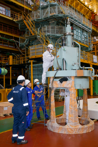 在9X92-B HP-SCR主機進入最關鍵的調試交驗階段,正值大連市新一輪疫情爆發,大柴公司按照疫情防控要求,實行了廠區封閉管理。經過周密部署,強化防控措施,堅持統籌安排、分類施策,由公司領導班子率先垂范,帶領各部門黨員干部、骨干人員主動擔當,留守公司,多方協調,晝夜奮戰,將主機調整至最優狀態,最終圓滿交付。大柴公司積極踐行以客戶為中心的理念和專業、高效、擔當的綜合服務,贏得了船東、船檢和船廠的好評。