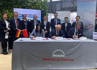 12月6日,中國船舶集團旗下中國動力子公司陜柴重工、中國船舶工業貿易有限公司、MAN公司在2023年中國國際海事會展上舉行了MAN 35/44DF CD發電機組專利許可協議簽訂儀式,標志著陜柴重工成為國內首家獲得該機型許可證的生產廠商。陜柴重工總經理、黨委副書記孫志宏、副總經理雷軍、謝占成與中船貿易總經理胡凱、MAN亞太區負責人薩拉斯等領導共同見證了簽訂儀式。