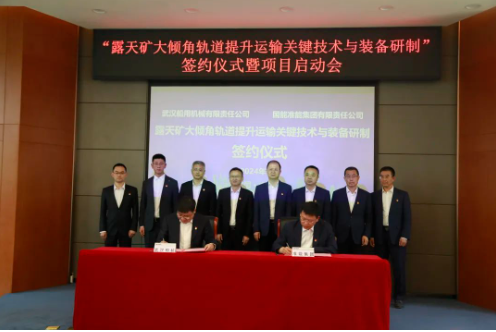 2024年5月8日,中國船舶集團(tuán)旗下中國動(dòng)力子武漢船機(jī)公司與國能準(zhǔn)能集團(tuán)在內(nèi)蒙古準(zhǔn)格爾旗舉行了“露天礦大傾角軌道提升運(yùn)輸關(guān)鍵技術(shù)與裝備研制”合同簽約儀式。這不僅標(biāo)志著項(xiàng)目正式進(jìn)入實(shí)施階段,也意味著雙方在露天礦山裝備領(lǐng)域深度合作、推動(dòng)露天礦山開采運(yùn)輸領(lǐng)域綠色化、智能化創(chuàng)新發(fā)展上邁出了堅(jiān)實(shí)一步。
