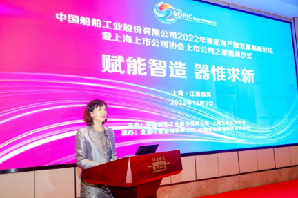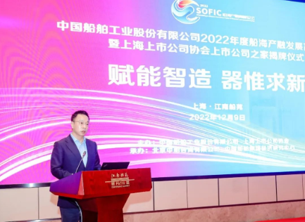 12月9日,中國船舶工業股份有限公司2022年度船海產融發展高峰論壇暨上海上市公司協會上市公司之家揭牌儀式在上海舉行。論壇旨在搭建產業與金融交流合作平臺,聚合船舶工業產業頭部資源,洞悉行業賽道一線信息,深化金融助力實體經濟發展,推動行業創新驅動。中國船舶集團黨組成員、總會計師賈海英,上海上市公司協會會長、上港集團黨委書記、董事長顧金山出席論壇并致辭。中國船舶集團黨組成員、副總經理,中國船舶股份董事長盛紀綱發表主旨演講。